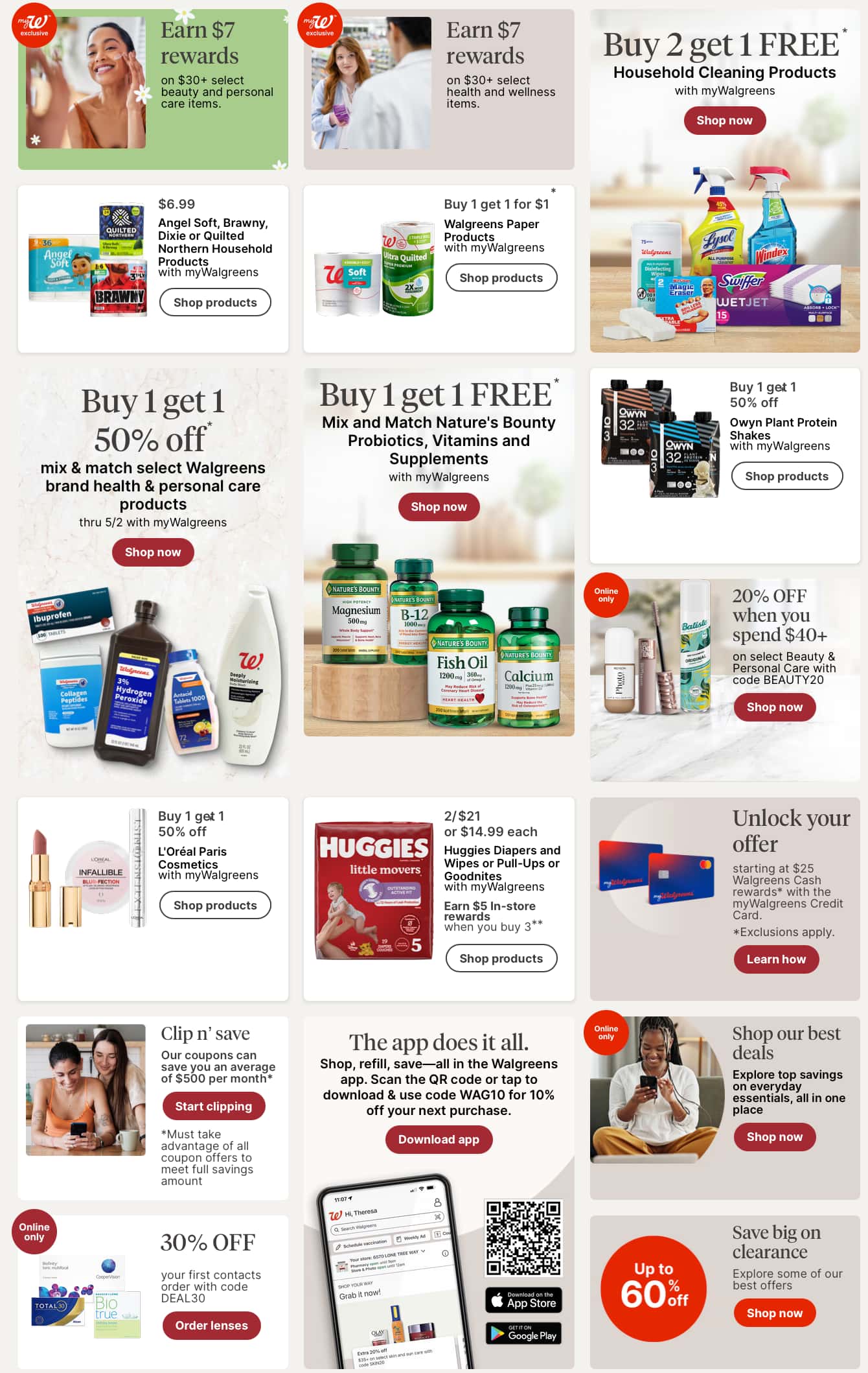 Don’t miss this week Walgreens Ad Sale and Specials and don’t forget to print off your local Ad. Walgreens stores carry a wide range of products for customers and contain a pharmacy where you can get prescriptions filled. Also, shop and save even more with the retailer Balance Rewards, get $50 for 50,000 points.